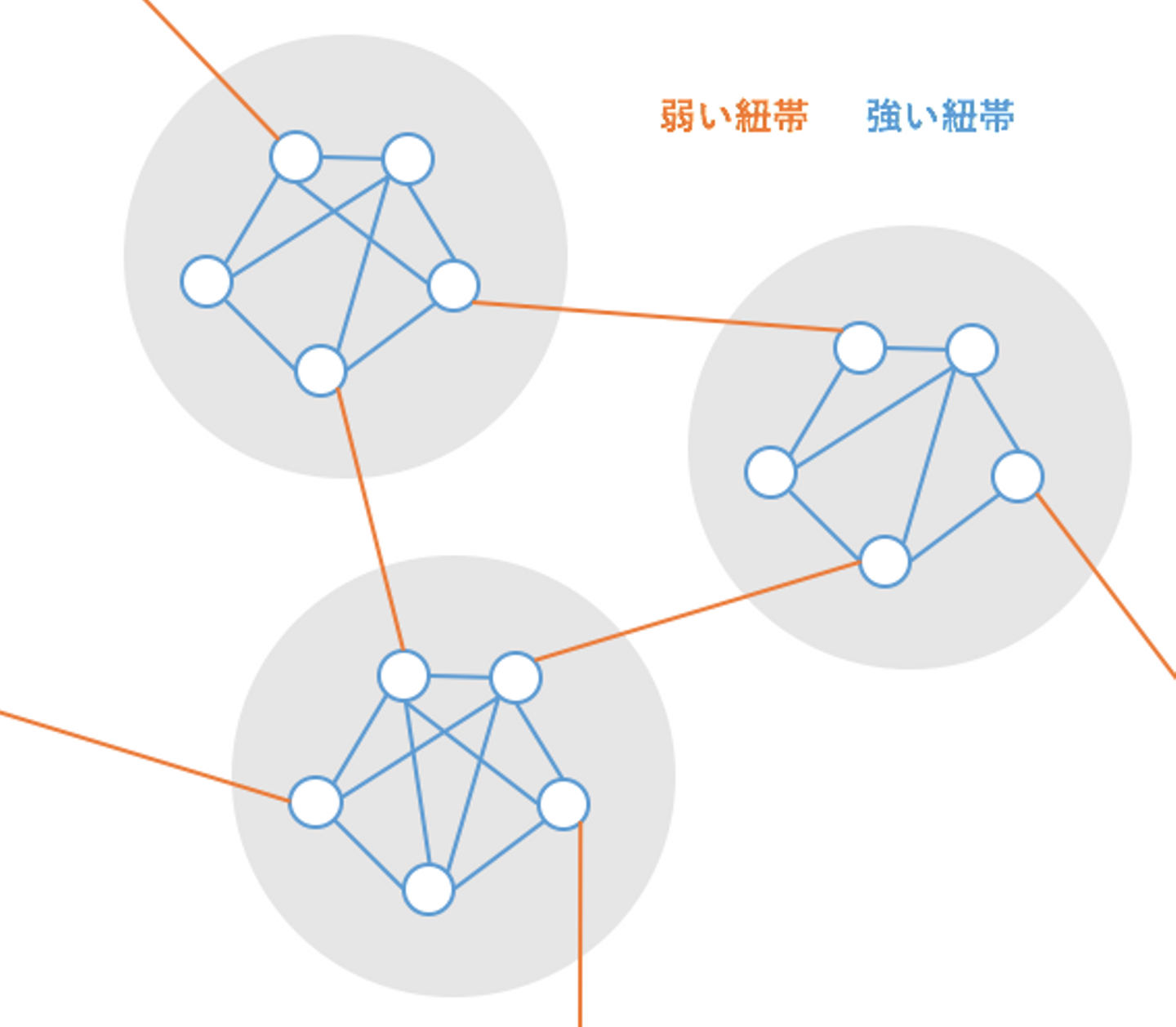ロングテールのビジネスを展開する人たちは、最初はオンラインサービスを使って疑似バックオフィスを作れていても、事業が例えば月商100万から1000万規模に育っていけば、様々な専門分野の知識が必要になってくる。デザインやプログラミング、経理、財務、採用、労務、マーケティング、ブランディング、挙げていけばキリがない。そして往往にして人は、自分の専門領域以外には疎いし人も知らない。なのでそこの扉をあけてくれる弱い紐帯が必要になる。