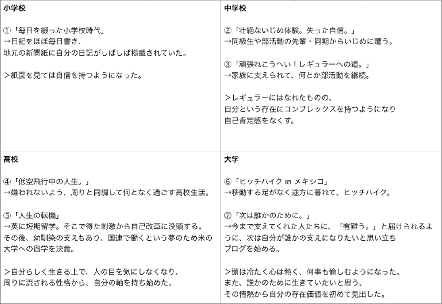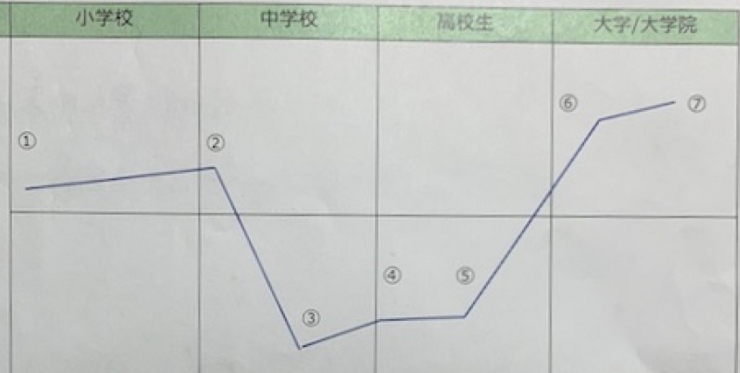 就活の際に作成したライフチャート(小学校〜大学)を共有させていただきます。
